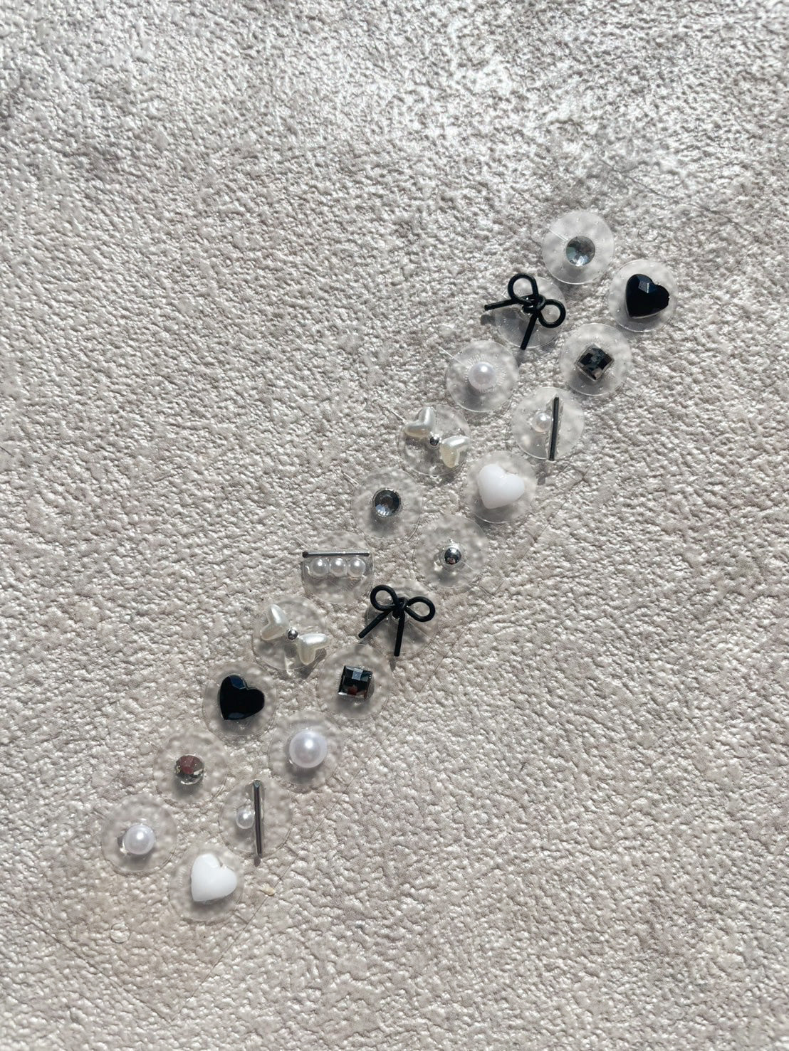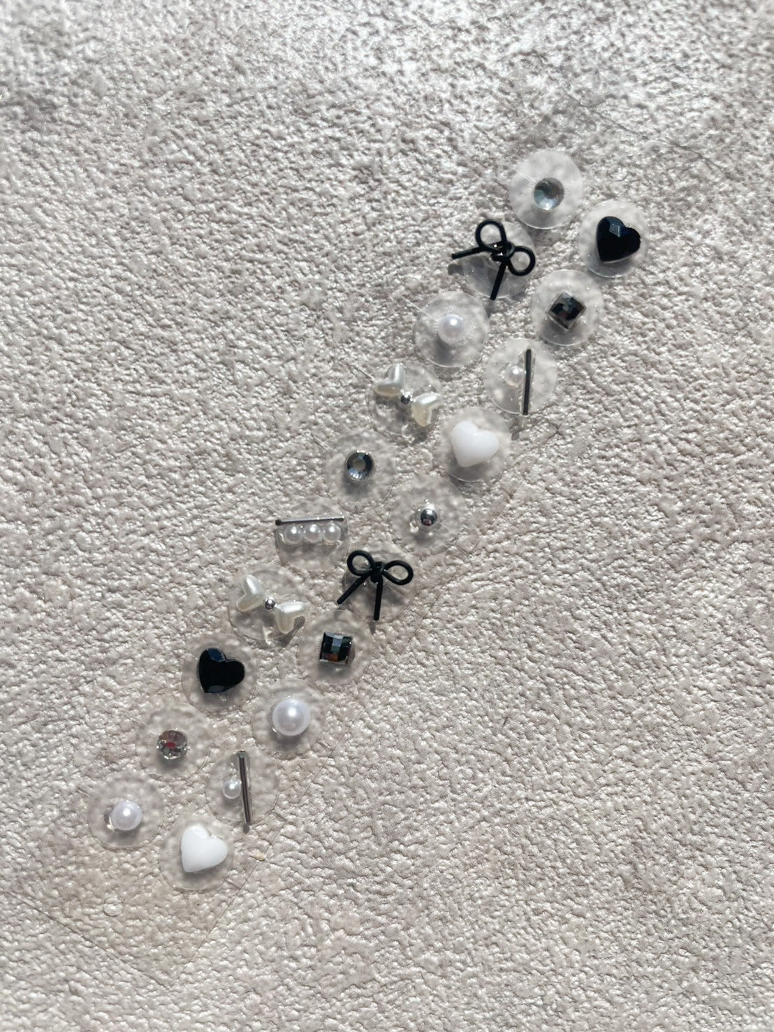 耳つぼジュエリー 金属アレルギー対応 ブラックリボン ハート モノトーン No.18