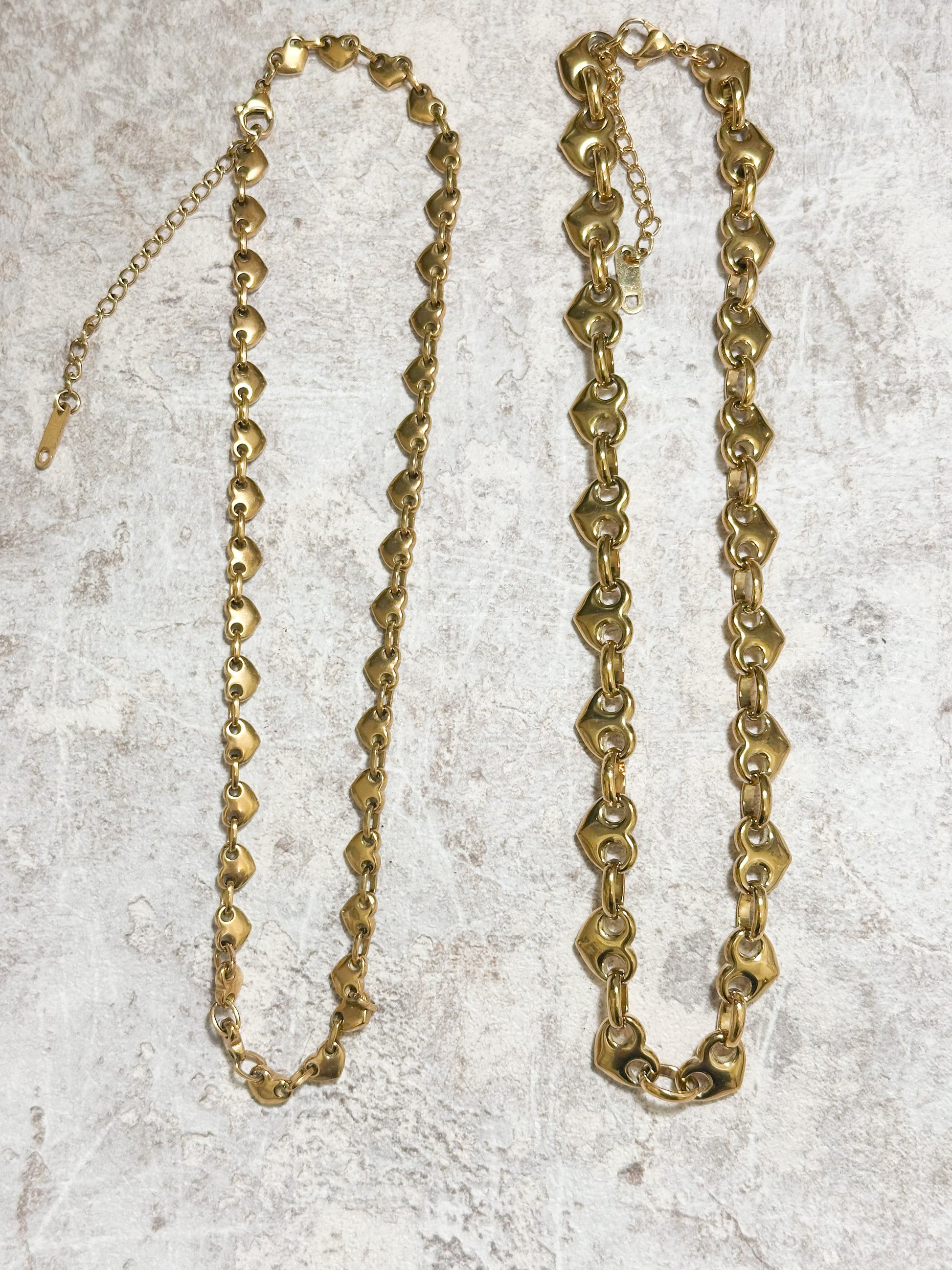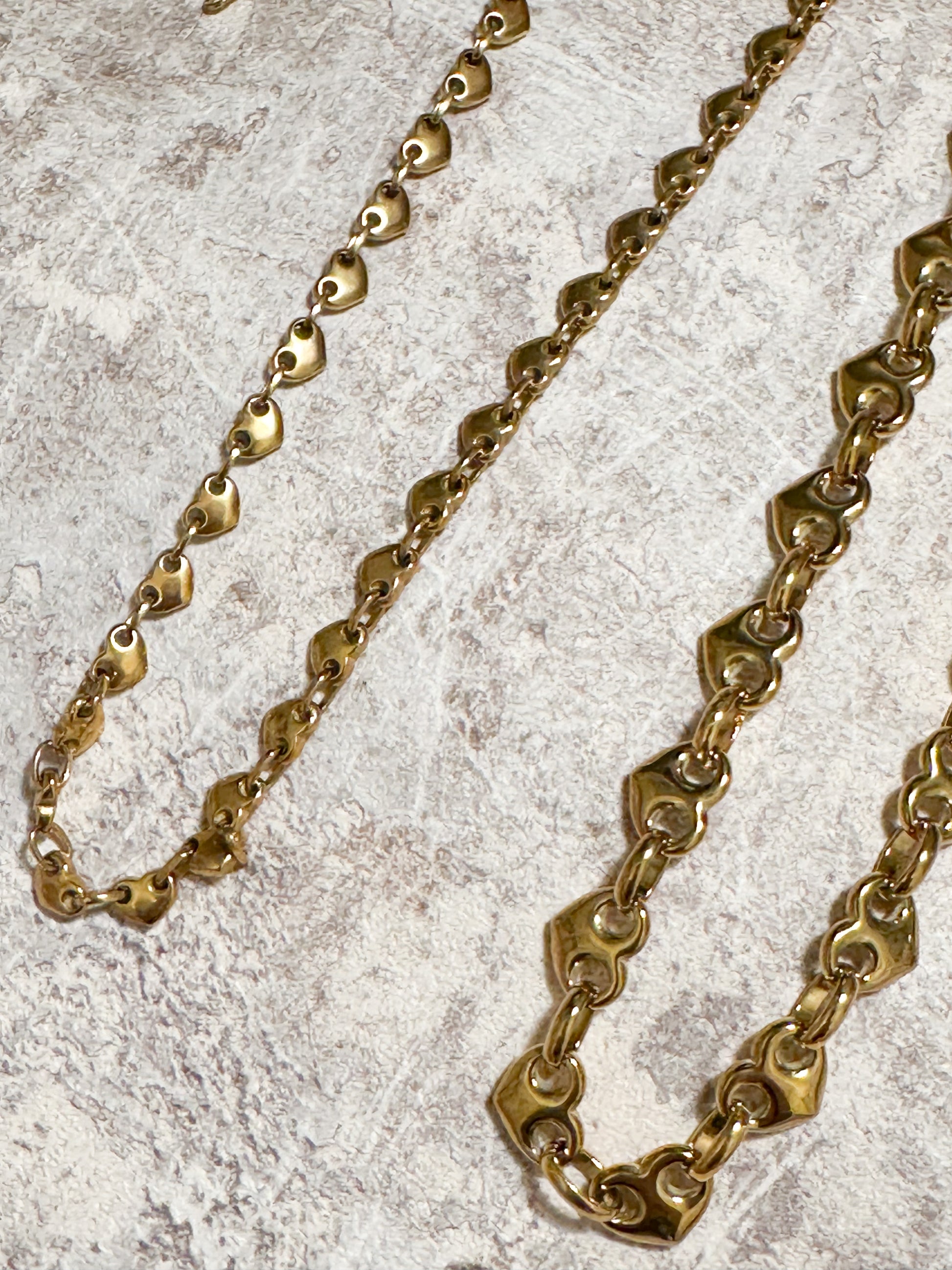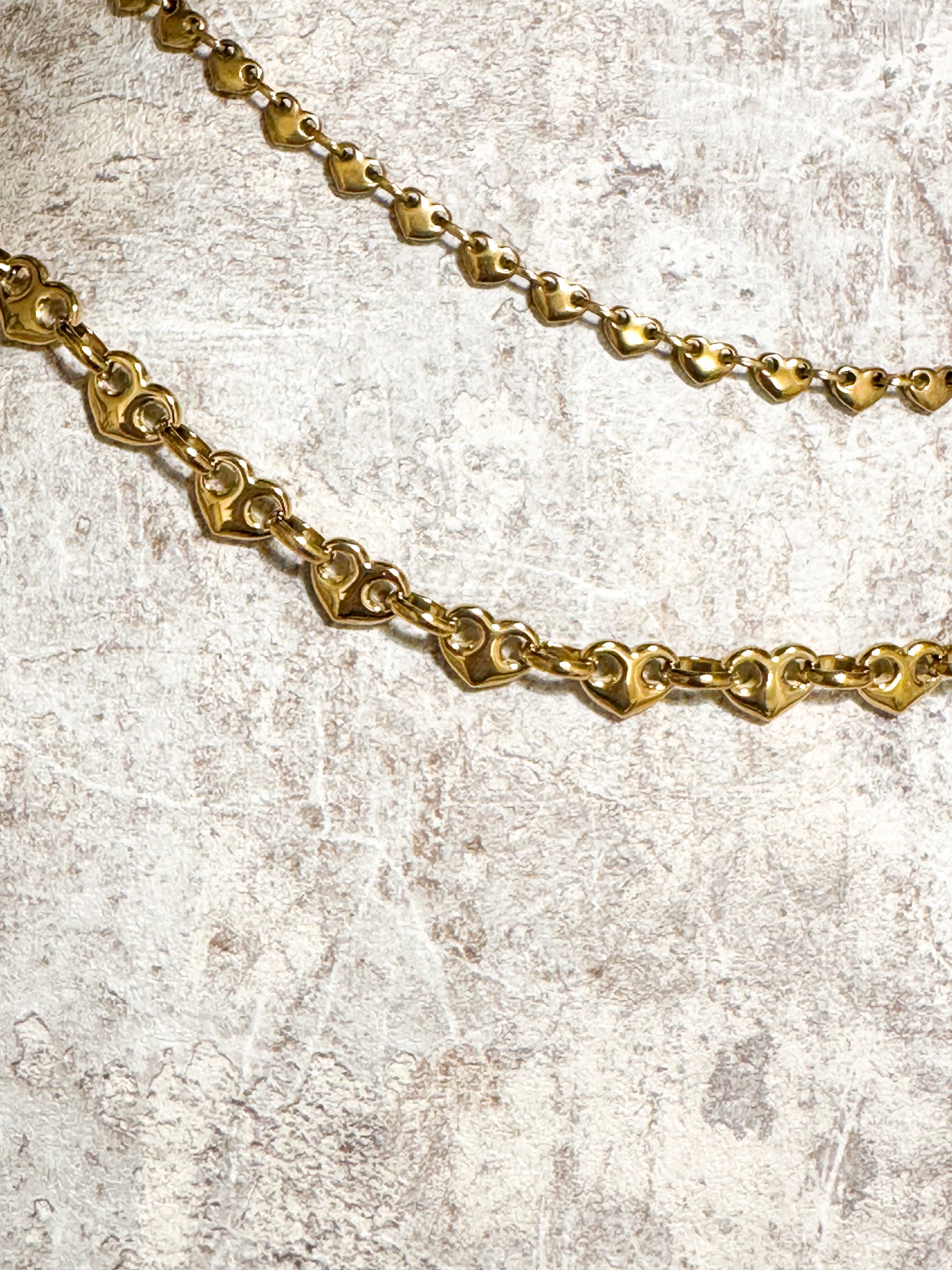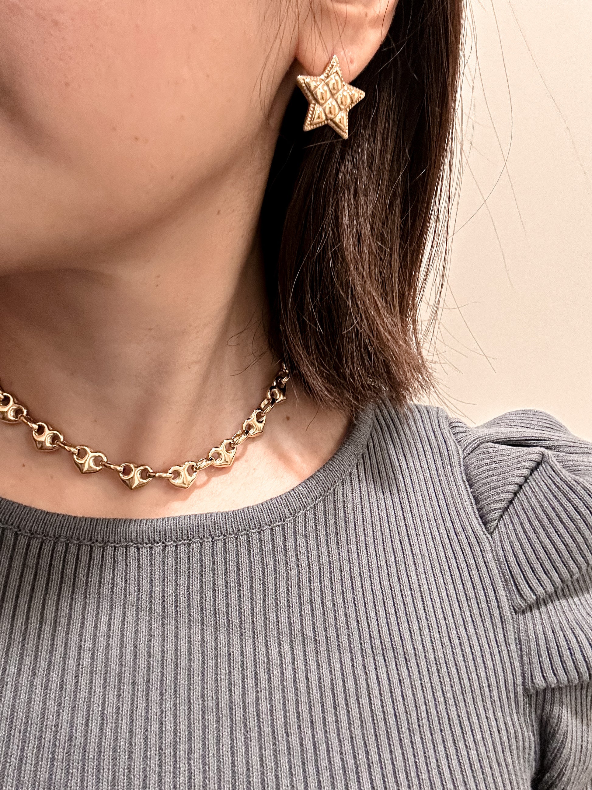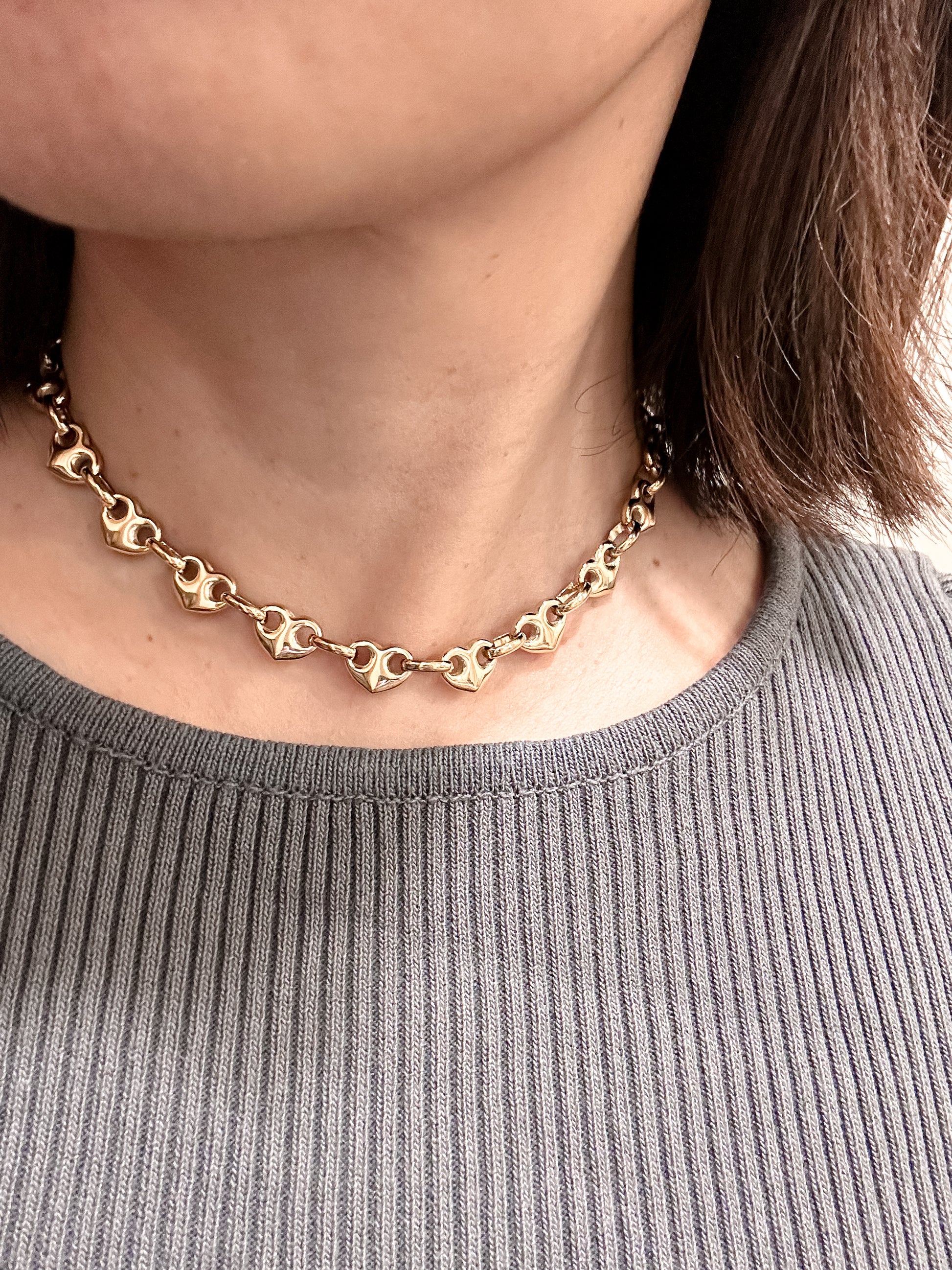 ハートの輪郭を描くように連なるリンクチェーンが、首元を華やかに魅せるゴールドネックレス。