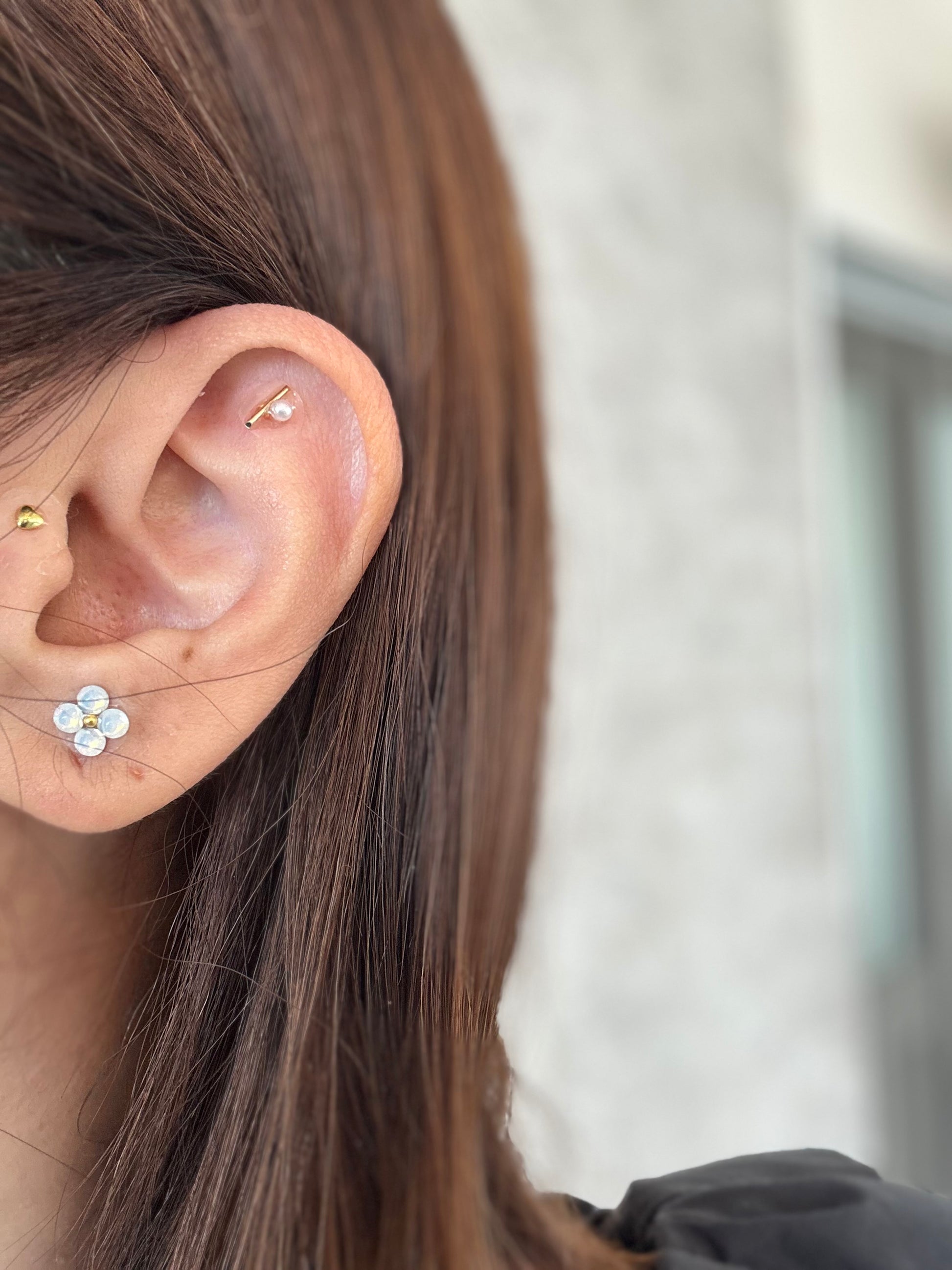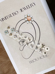 耳つぼジュエリーシール ステンレス オパールフラワー リボン パール クリスタル 金属アレルギー対応 No.6 自分で付けれる耳ツボシール