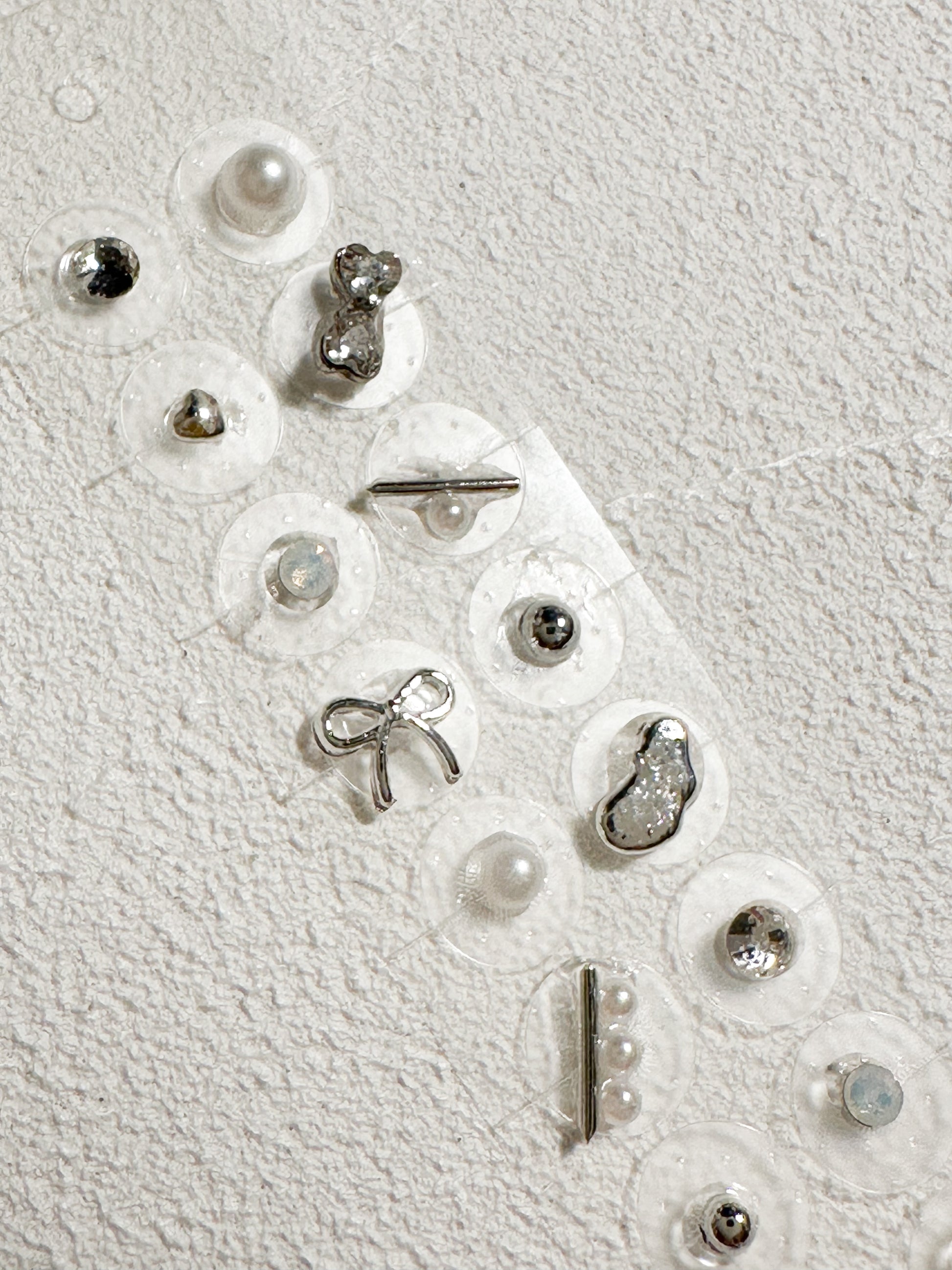 耳つぼジュエリーシール 金属アレルギー対応 ジュエルリボン パール リボンNo.15 自分で付けれる耳ツボシール