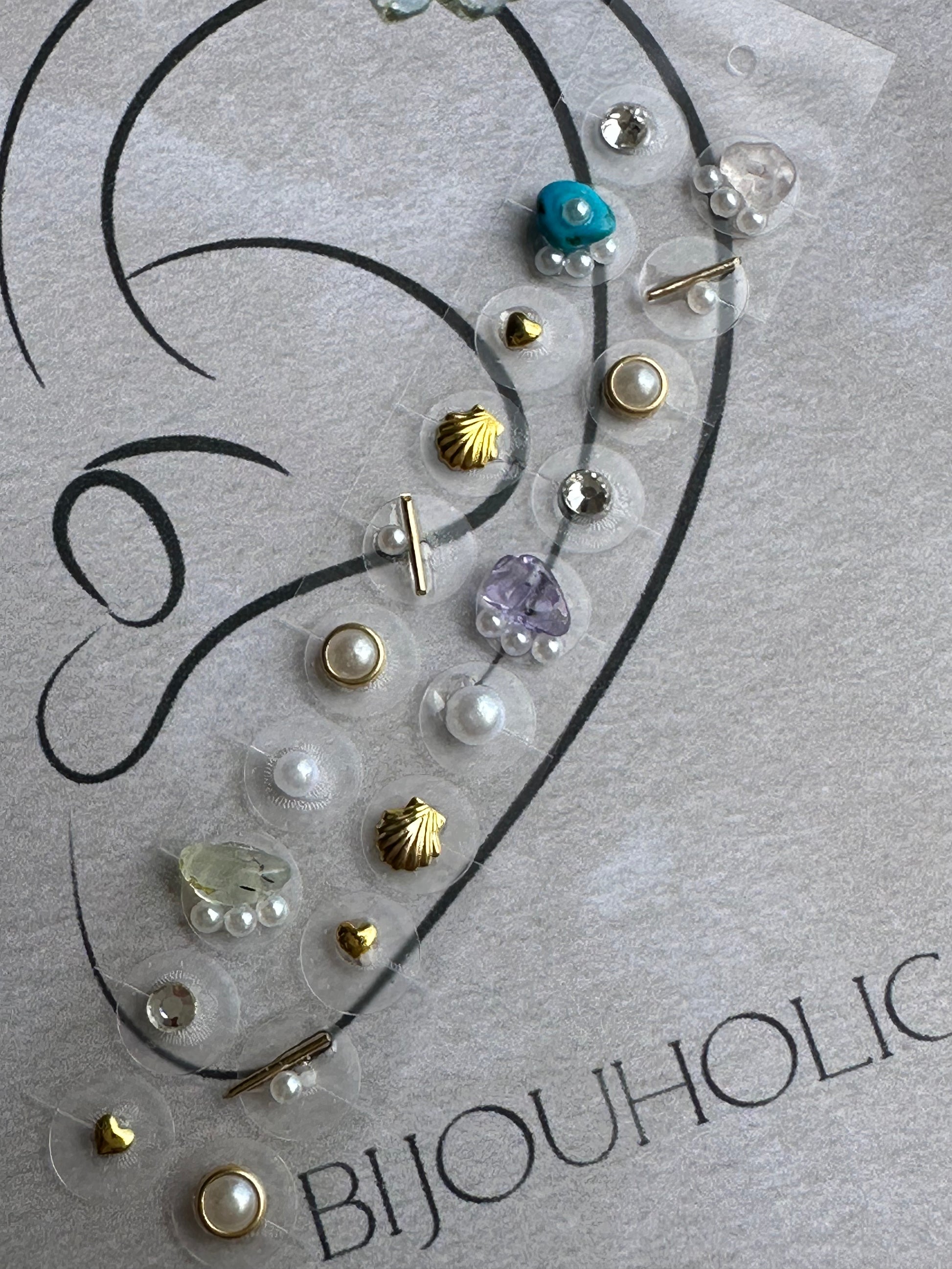 耳つぼジュエリーシール 金属アレルギー対応 天然石 パール 色々No.12 自分で付けれる耳ツボシール