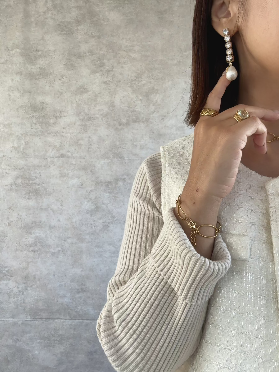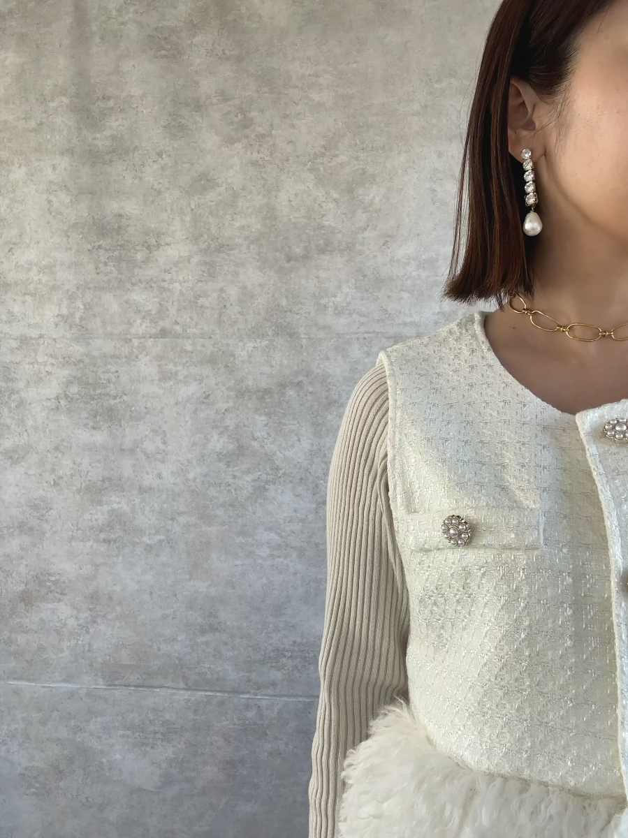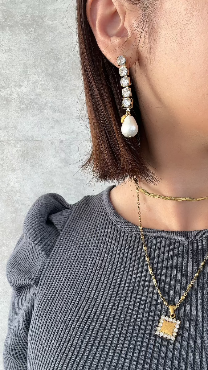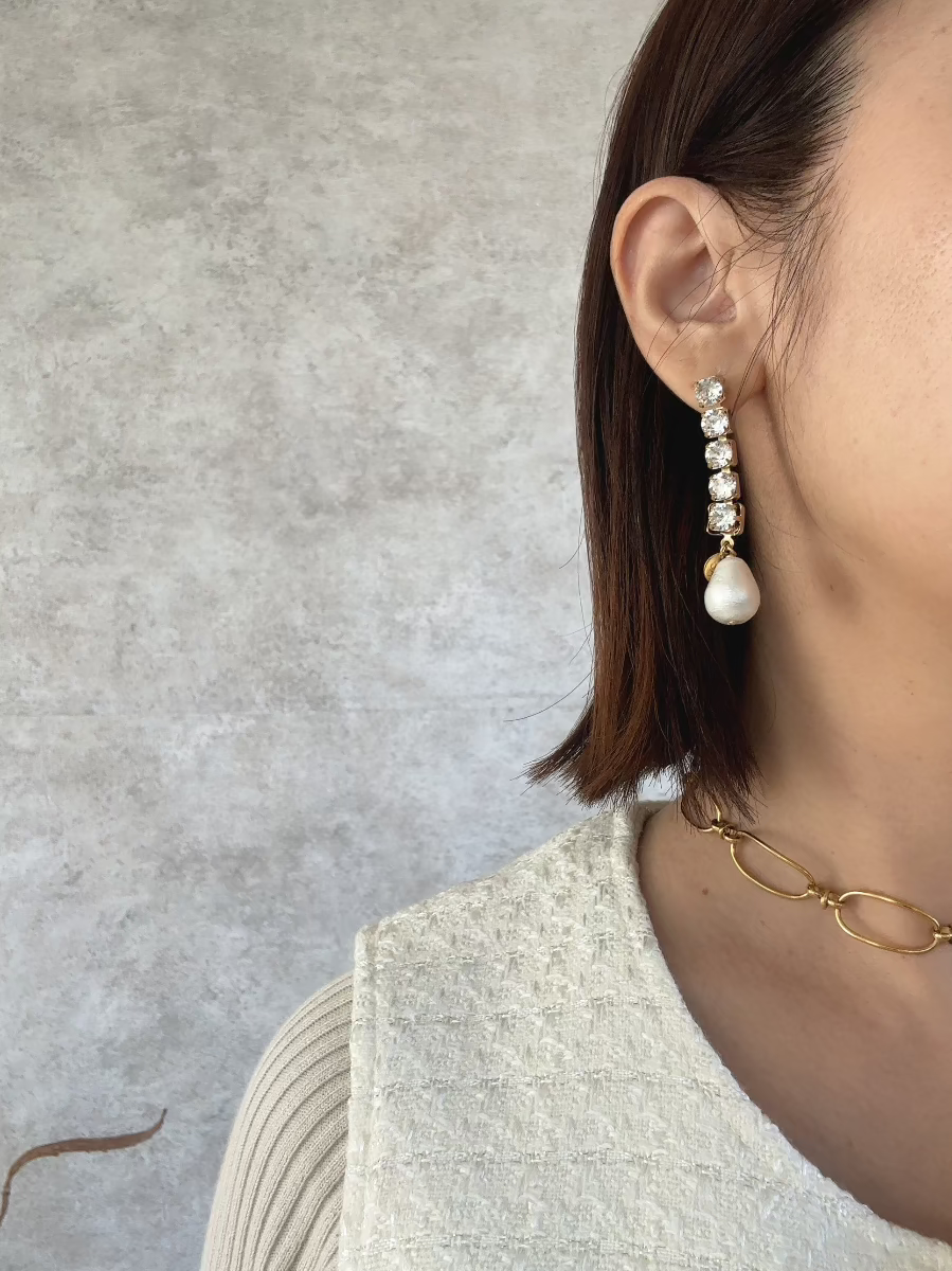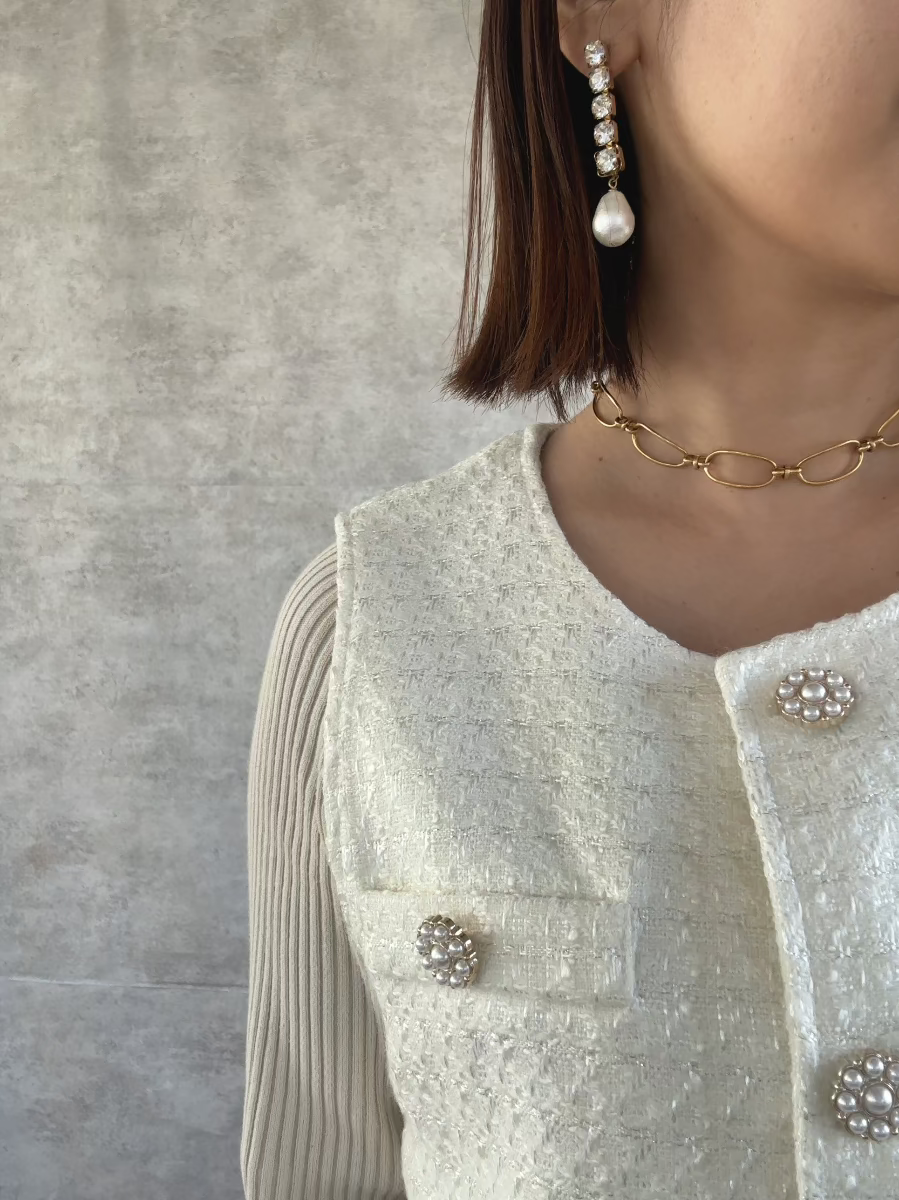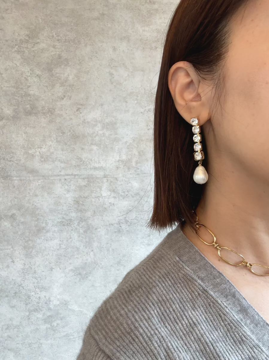 ビジューレーンとコットンパール雫の付けるだけでドレスアップする
