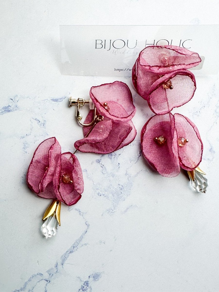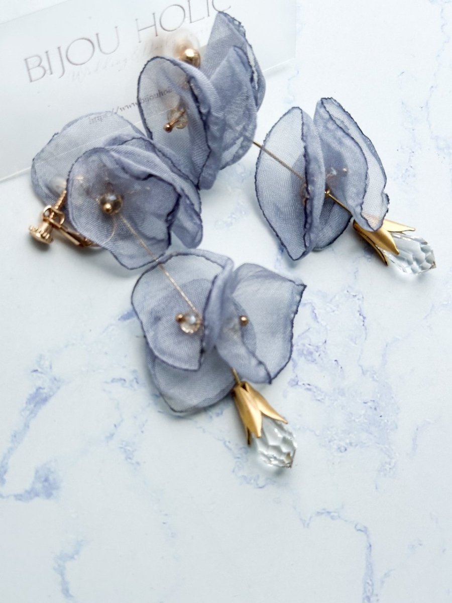 オーガンジーフラワークリスタル雫ピアス&イヤリング