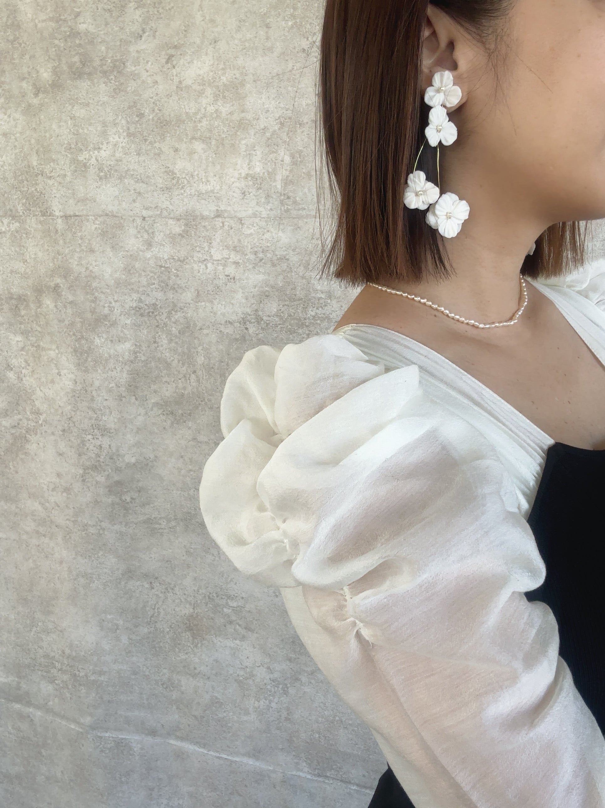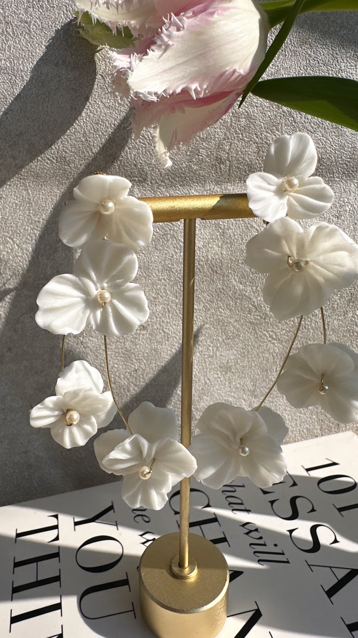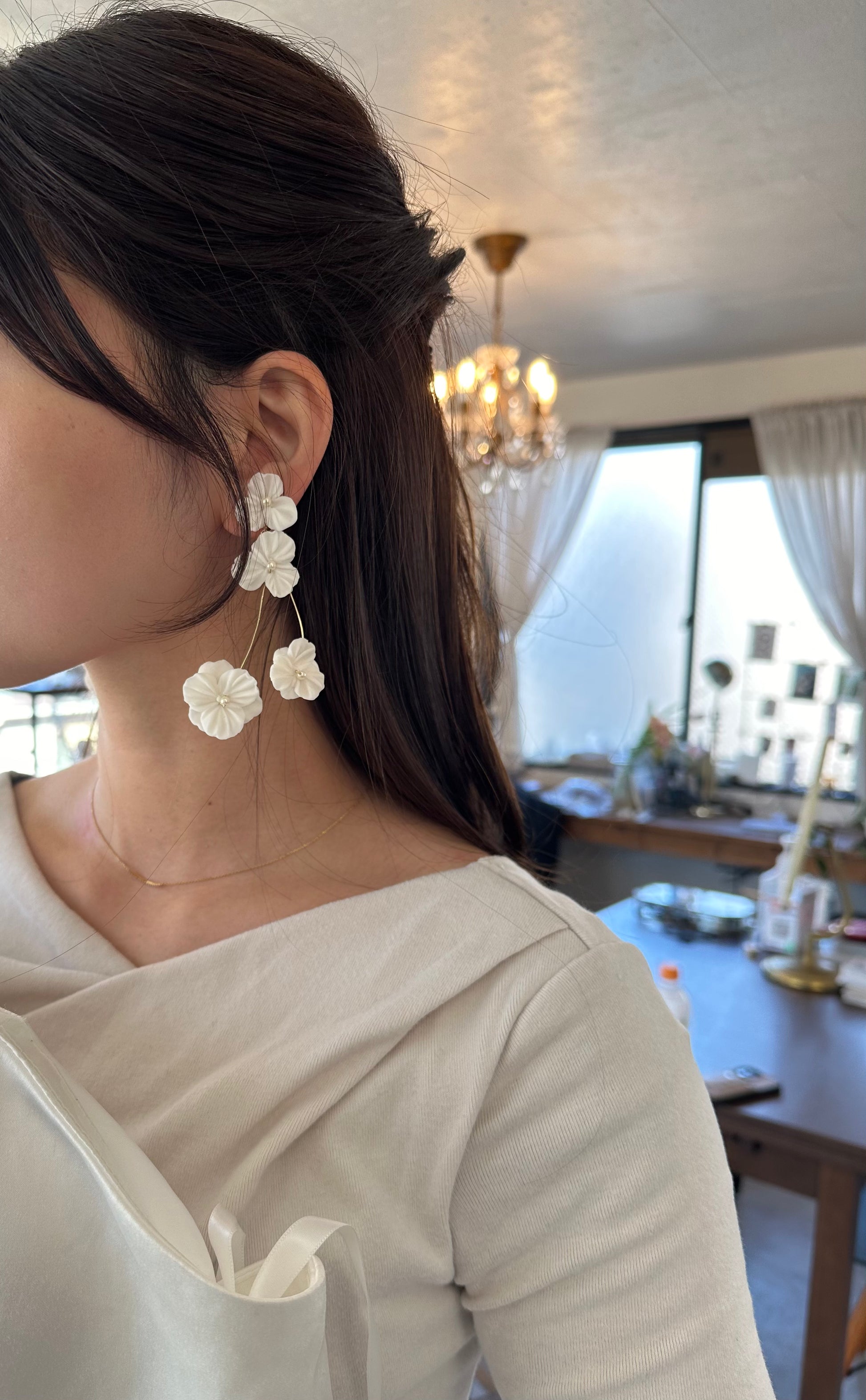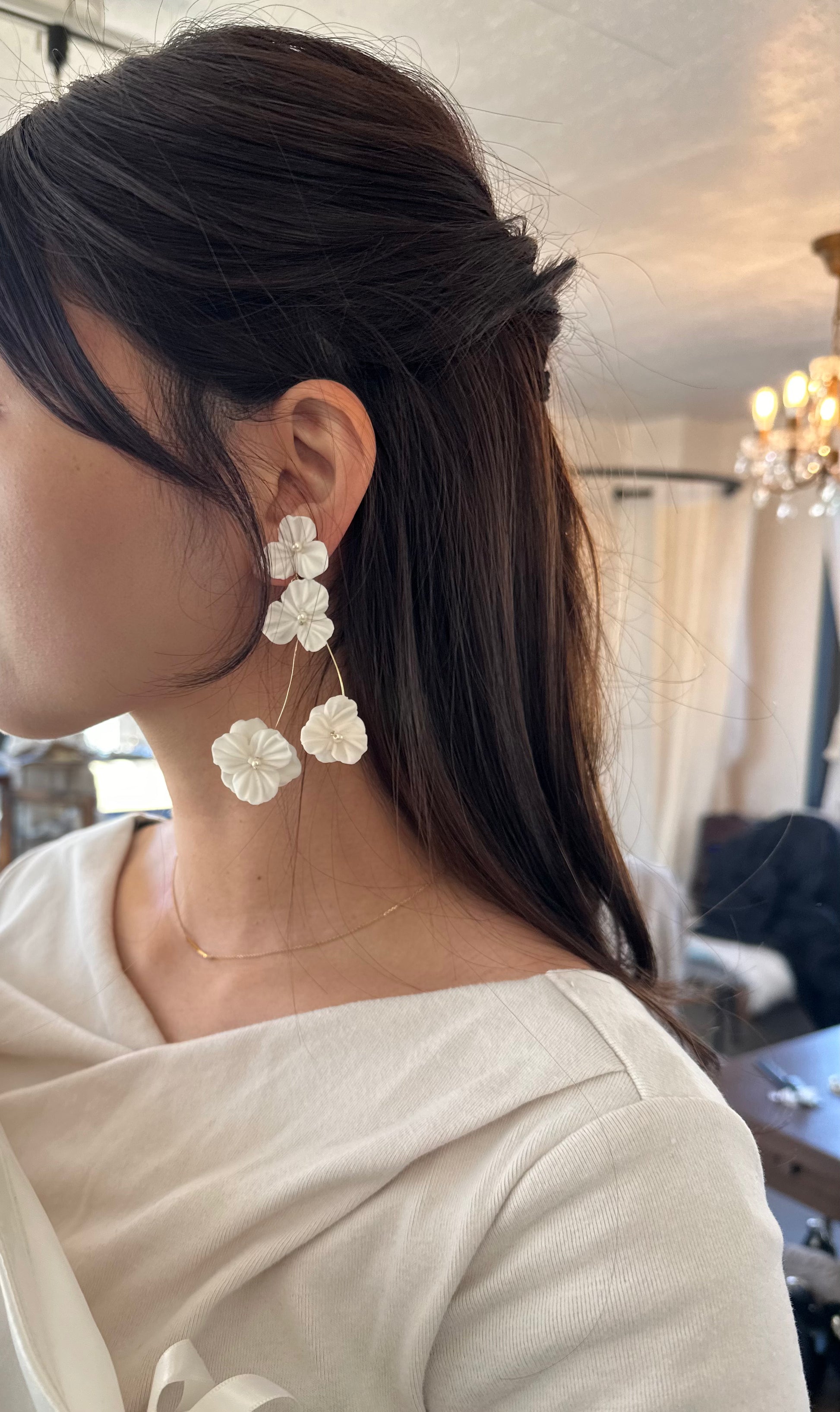 白いお花が咲き乱れる華やかさのある大ぶりピアス&イヤリング。