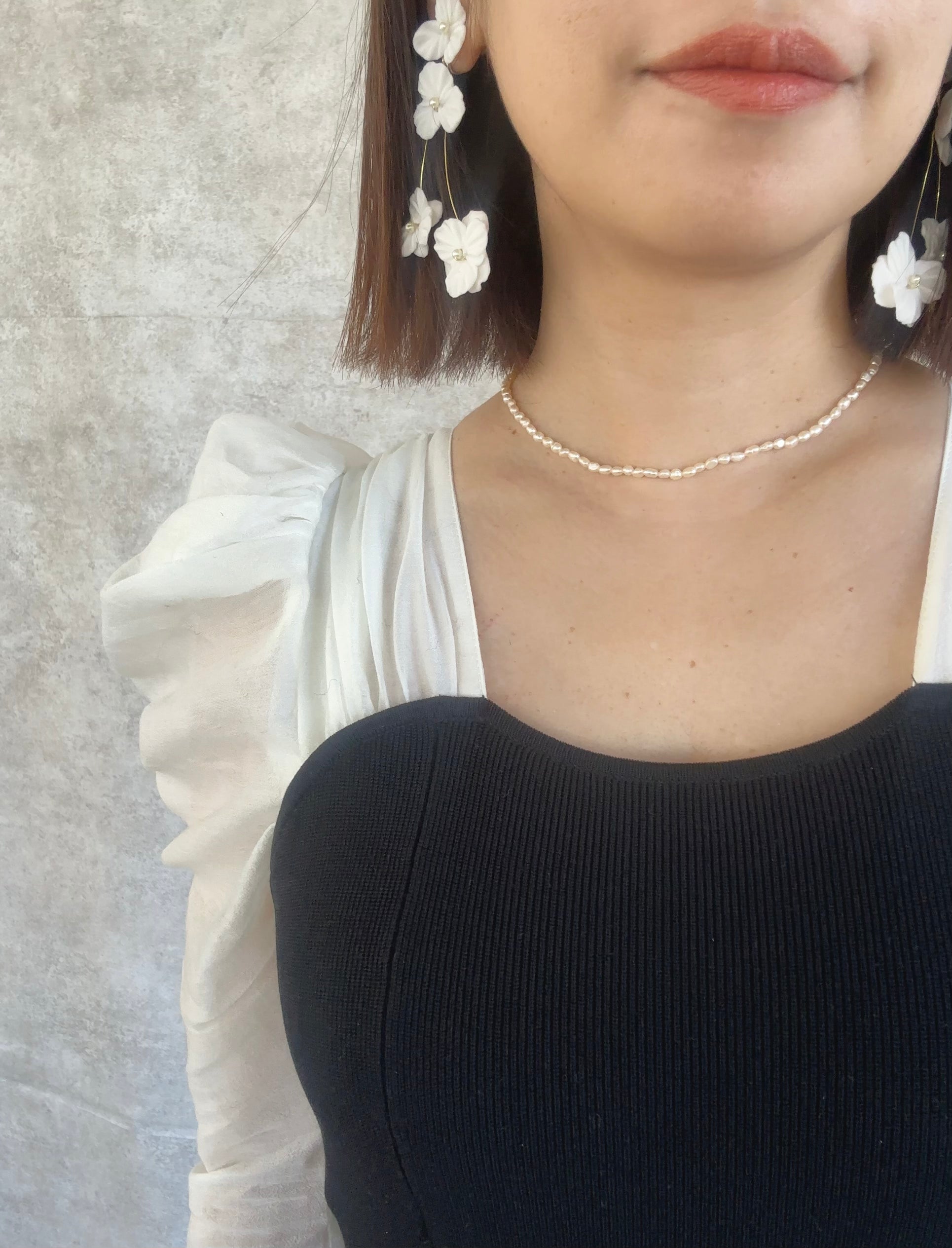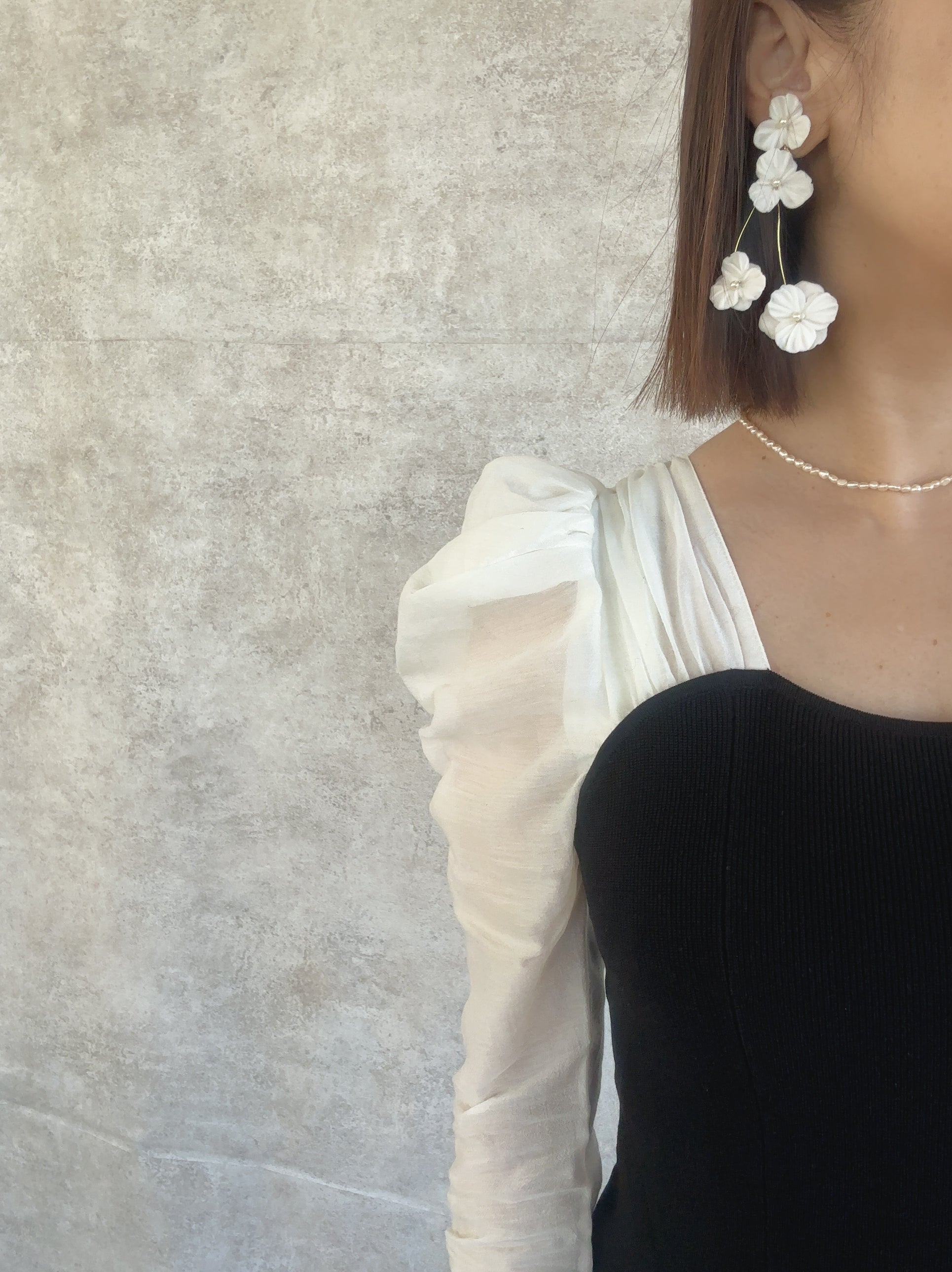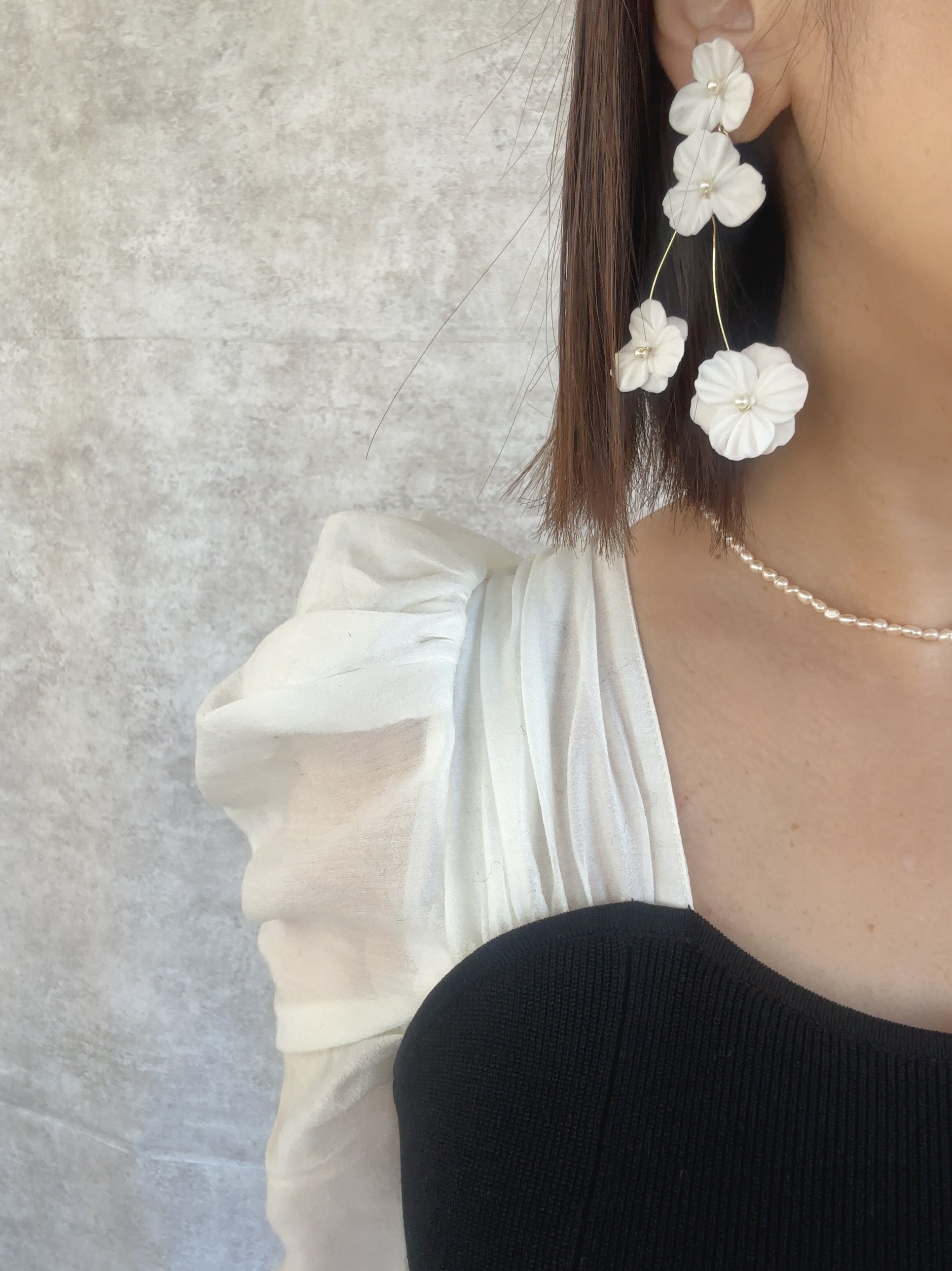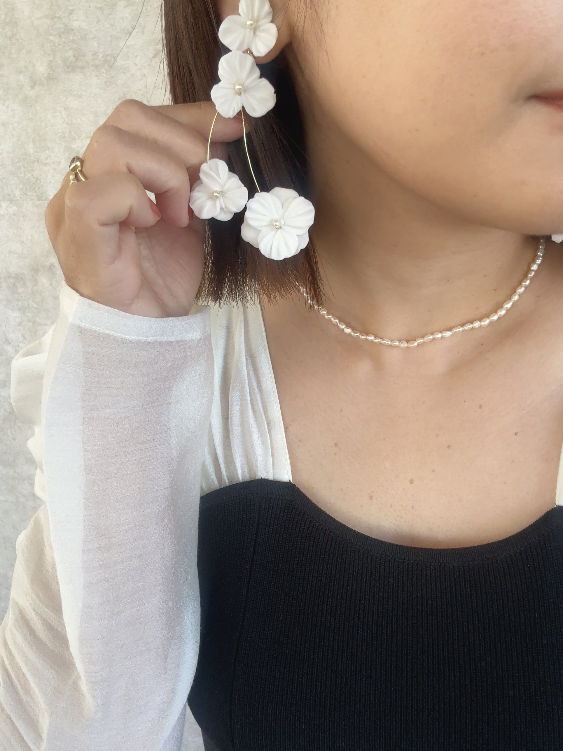 白いお花が咲き乱れる華やかさのある大ぶりピアス&イヤリング。