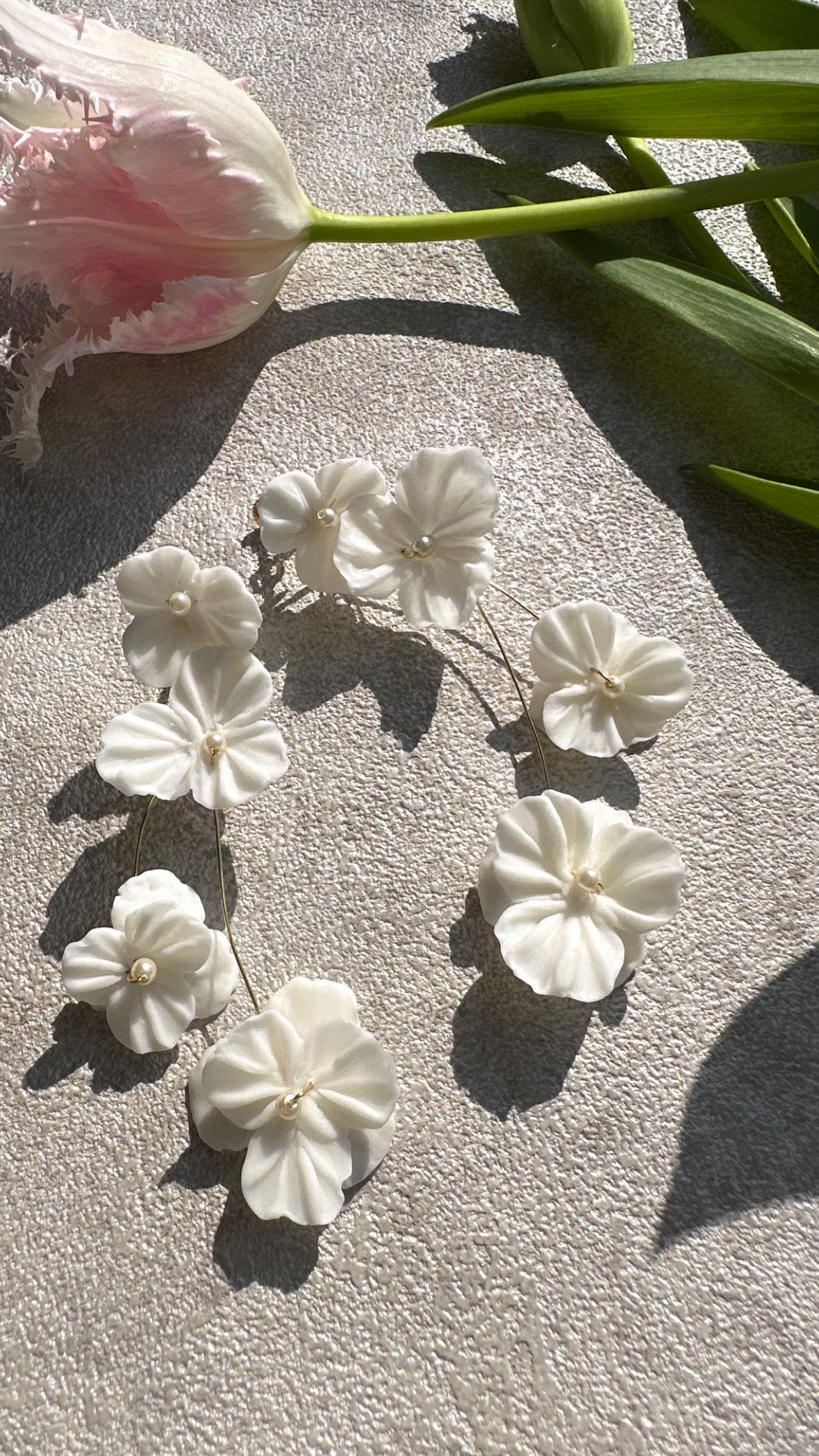 ホワイトフラワーブルームピアス&イヤリング 結婚式 花嫁